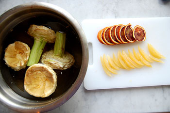 The orange here is quite sweet, but I find the bit of preserved lemon gives it just enough sharpness to prevent it from being cloying. I was trying to do a bit of research regarding the origins of this salad, if it was from a particular part of Morocco, but it seems to be rather ubiquitous. And now that you know how to prep artichokes, maybe it can be ubiquitous in your home too!